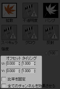 詳細はUV変化をチャンネルに同期化 をご確認ください。 |
